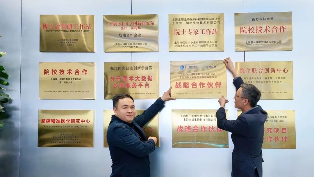 上海鲁一细胞高级运营总监高健先生与上海华测艾研医学检验所运营总监林为濬先生签署了战略合作协议,并共同挂上了象征着合作的铜牌。